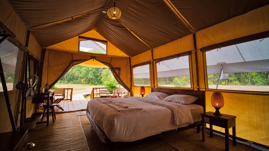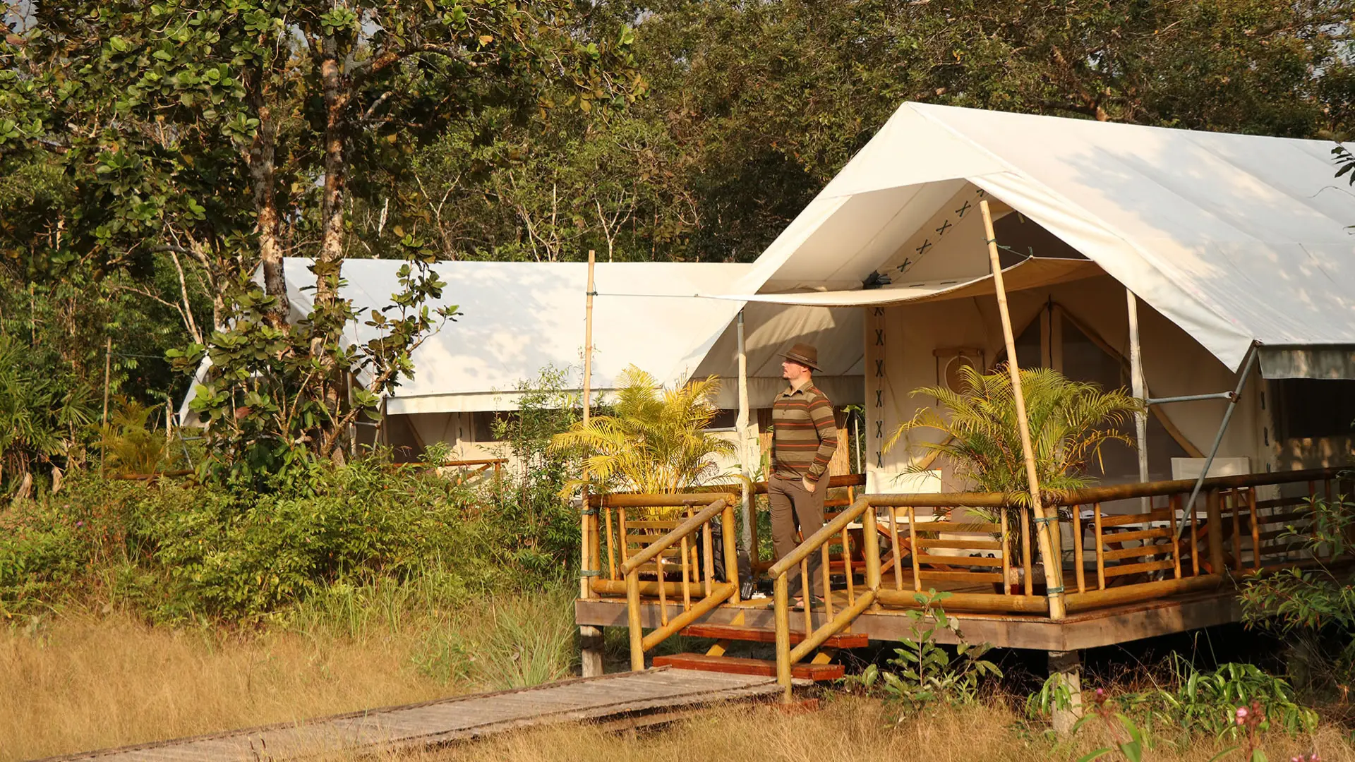 Embark on a scenic river journey to the secluded Cardamom Tented Camp, where you’ll be introduced to its vital conservation mission. Settle into your luxurious safari-style tent before exploring the surrounding jungle or relaxing by the river. The next day, join Wildlife Alliance rangers on a forest patrol, tracking wildlife and witnessing the impact of their anti-poaching efforts. Choose to hike or kayak back to camp, enjoying the sunset and riverside dining. On your final morning, an optional wildlife boat trip or hike awaits before your departure.